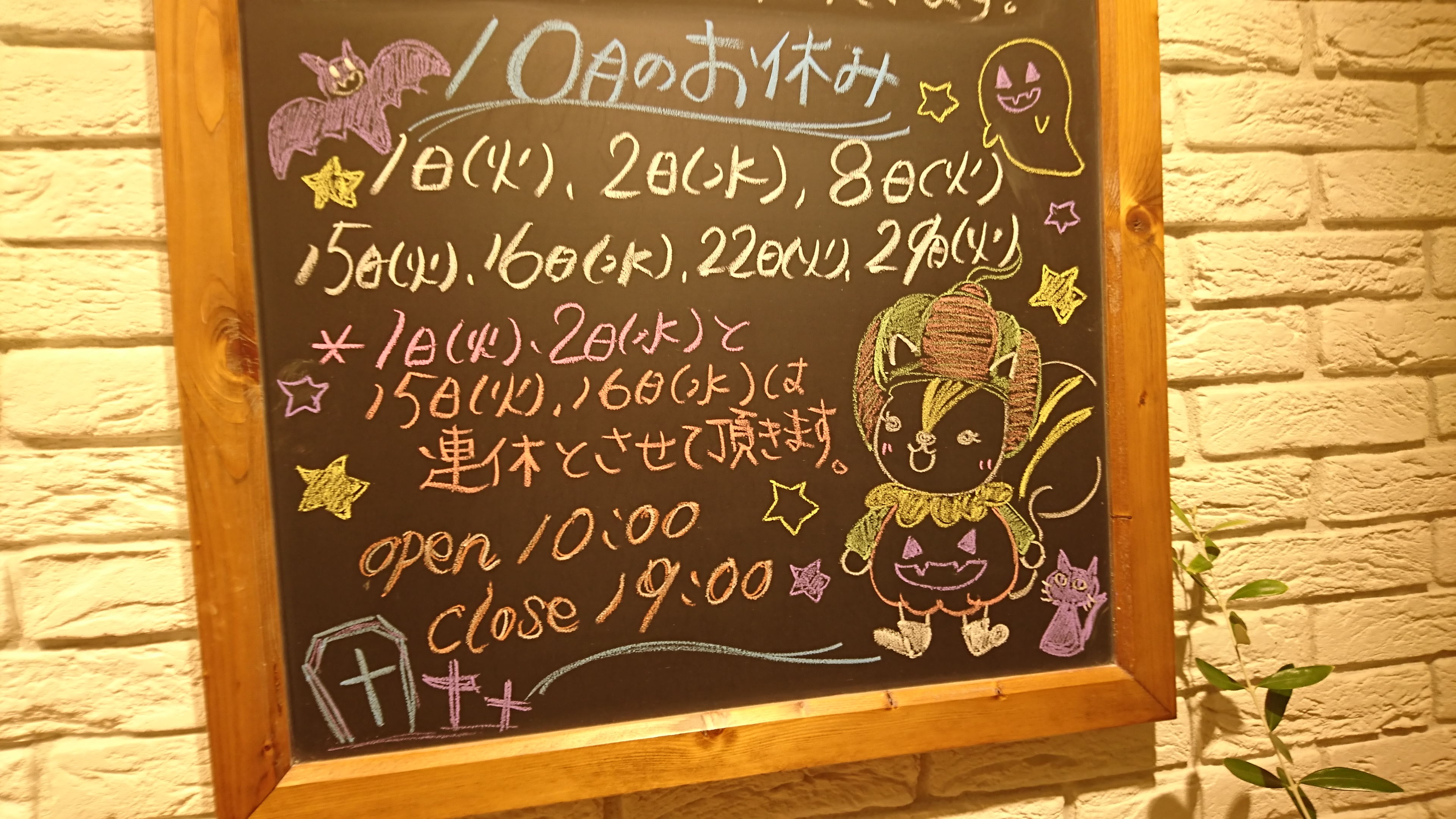 10月のお休み・・・